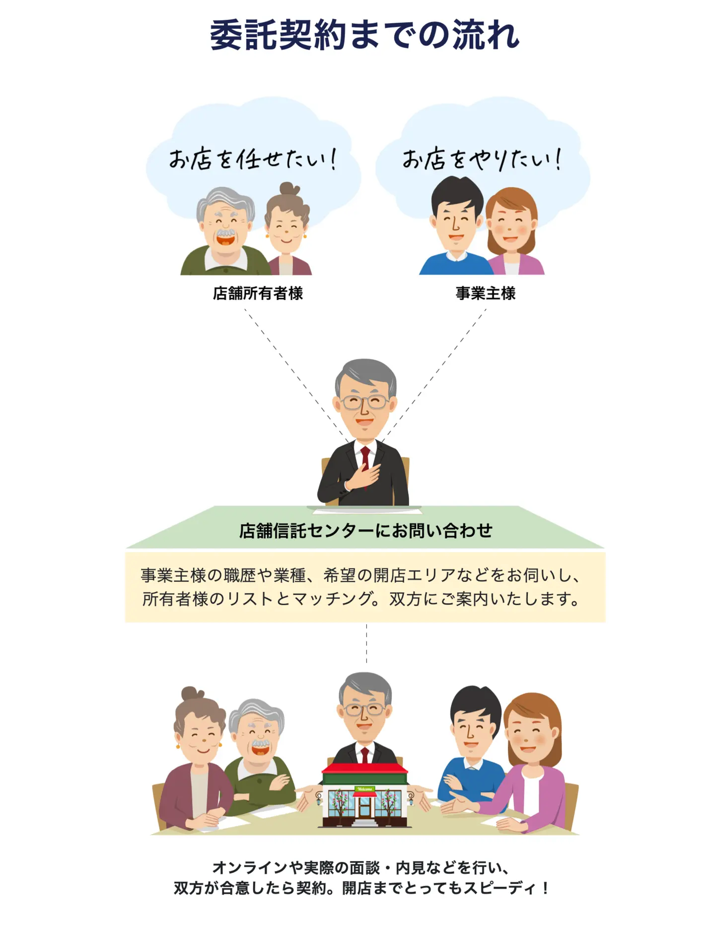 店舗オーナーと、新規事業者の合理的な橋渡しを